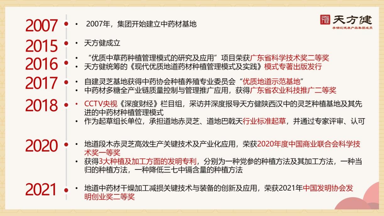 從集團(tuán)在2007年建立中藥材基地開始,深耕十余年,天方健對于中藥材種植研究實(shí)踐成果顯著。天方健的種植管理模式及成果屢獲多項(xiàng)國家、省級殊榮,并且天方健作為多項(xiàng)原料標(biāo)準(zhǔn)的起草組長,承擔(dān)相關(guān)行業(yè)標(biāo)準(zhǔn)的起草制定?,F(xiàn)在,天方健已經(jīng)為枸杞、靈芝等幾十個品種,建立上百個原材料種植基地,其中50多個基地通過了天方健種植管理模式的認(rèn)證。